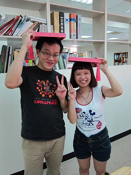 禮盒蓋子很像學士帽,所以兩位編輯忍不住......XDD