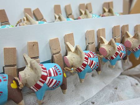 其一贈品是很多小豬仔→豬太太彩繪木雕豬仔夾,要把它們通通裝進小紙盒裡。